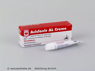 Die Aciclovir AL Creme wird zur lokalen Behandlung von Herpesinfektionen der Lippen angewendet. Die Creme enthält den Wirkstoff Aciclovir. Die Herpesviren ruhen oft für lange Zeit unbemerkt im Körper und brechen aus sobald das Immunsystem geschwächt wird. Zu einer Schwächung des Immunsystems kommt es unter anderem durch eine Krankheit, Fieber, Sonnenlicht oder Stress. Bei einer Infektion kommt es zur Bildung von juckenden und schmerzenden Bläschen im Lippenbereich. Die Aciclovir AL Creme verhindert die Vermehrung der Viren, wodurch eine Verbreitung der Infektion ausgeschlossen wird.