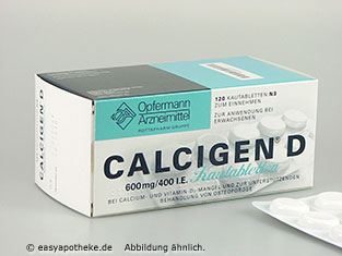 Die Calcigen D Kautabletten werden zur unterstützenden Therapie bei Osteoporose angewendet. Die Kautabletten enthalten eine Kombination aus den beiden Wirkstoffen Calcium und Vitamin D3. Zur Vorbeugung der Osteoporose gehört eine ausreichende Zufuhr von Calcium und Vitamin D3. Zur Osteoporose kommt es hauptsächlich wenn Auf- und Abbau des Knochens aus dem Gleichgewicht kommen, dann ist die Stabilität und die Stärke des Knochens beeinträchtigt und es kommt eher zu Knochenbrüchen. Durch die rechtzeitige Einnahme der Calcigen D Kautabletten wird einer Osteoporose vorgebeugt und die Folgen werden verhindert.