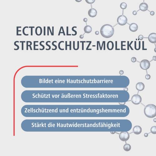 Ectoin, ein sogenanntes Stressschutz-Molekül, wurde in einem ägyptischen Salzsee entdeckt, wo es Bakterien unter extremen Bedingungen das Überleben ermöglicht. Seine Wirkung entfaltet sich auf zellulärer Ebene durch die Bildung eines "Ectoin Hydro Complex" - einer stabilen Wasserschicht um Zellmembranen und Proteine. Diese natürliche Barriere kann den Organismus vor äußeren Stressfaktoren wie Allergenen und Umweltschadstoffen schützen. Zudem wirkt Ectoin stärkend und stabilisierend auf die Hautschutzbarriere, was die Widerstandsfähigkeit der Haut gegen schädliche Umwelteinflüsse erhöhen kann.