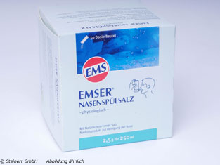 Emser Nasenspülsalz wird zur gründlichen und sanften Reinigung der Nase eingesetzt. Es hat eine besonders gute schleimlösende und abschwellende Wirkung. Die Nasenspülung hat sich bewährt bei trockener Nase mit Borkenbildung, bei starker Staub-und Schmutzbelastung, bei chronischen Entzündungen der Nase und der Nasennebenhöhlen, bei Pollenflug für Allergiker. Emser Nasenspülsalz spült wirksam Krankheitserreger, Schmutz, Allergene und Pollen aus der Nase aus. Außerdem sorgt es für eine Befeuchtung der Nasenschleimhaut. Das Nasenspülsalz eignet sich für Kinder ab 3 Jahren.