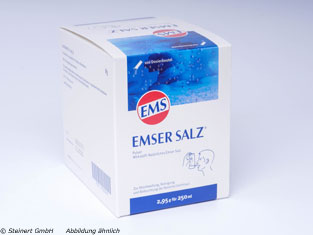 Emser Salz lässt einen akuten und chronischen Schnupfen schneller abklingen und fördert die Genesung nach Operationen an den Nasennebenhöhlen. Es ist ein Gemisch aus vielen verschiedenen Salzen, wie z.B. Natrium, Kalium, Magnesium, Calcium oder Chlorid. Diese Salzmischung hilft die Schleimhautoberfläche der Nase feucht zu halten und zähes Sekret auf zu lösen. Außerdem lässt sie die winzigen Härchen im Riechorgan schneller schlagen, so dass sie den dickflüssigen Auswurf oder schädliche Erreger rascher abtransportieren.