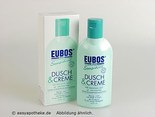 EUBOS Sensitive DUSCH & CREME enthält weder Farb- noch Konservierungsstoffe, ist pH-hautneutral sowie alkaliseifenfrei. Klinische Testergebnisse erbrachten den Nachweis, dass die Haut durch die Anwendung von EUBOS Sensitive DUSCH & CREME im Vergleich zu herkömmlichen Waschlotionen praktisch nicht entfettet wird und diesbezüglich ihr natürliches Gleichgewicht bewahrt. Dermatologisch auf Hautverträglichkeit getestet. Nach Rücksprache mit dem Arzt auch zur Reinigung und Pflege bei Hauterkrankungen geeignet.
