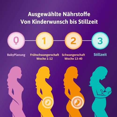 In Deutschland erfunden. Gefertigt nach den höchsten Standards. Glutenfrei, laktosefrei, frei von Hauptallergenen, ohne GVO. Lese die Inhaltsstoffe sorgfältig durch und vermeide die Verwendung bei bekannter Unverträglichkeit. Das Nr. 1 Schwangerschaftsvitamin vom Babywunsch bis zur Stillzeit⁴.