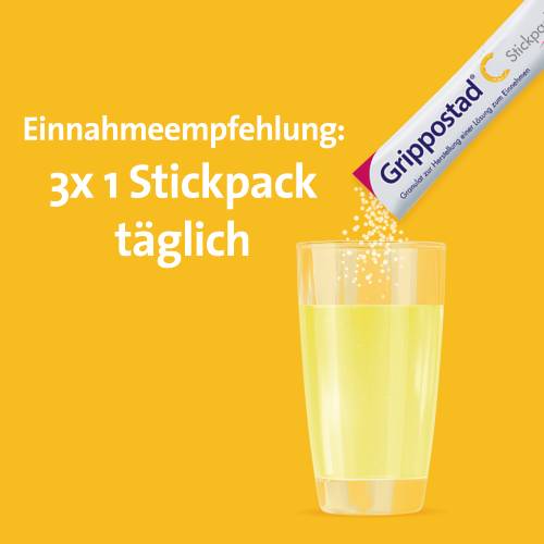 Erkältungen sind meist Virusinfektionen der Atemwege, die sich auf den ganzen Körper auswirken können. Viele Erkältete leiden bei einer Erkältung gleichzeitig an Schnupfen, Kopf- und Gliederschmerzen, Husten und Fieber. Alle diese Erkältungsbeschwerden gemein- sam können mit einem Kombi-Präparat bekämpft werden. Grippostad® C Stickpacks enthalten eine Kombination aus Paracetamol, Chlorphenaminmaleat, Vitamin C und Coffein. Sie wirken gegen Reizhusten, Erkältungsfieber, Kopf- und Gliederschmerzen und Schnupfen in einem und lindern schnell diese gemeinsam auftretenden Erkältungssymptome. Die Dosierung der Wirkstoffe ist so abgestimmt, dass mit einem Minimum an Wirkstoff ein Maximum an Wirkung erzielt wird. Das vegane Trinkgranulat ist auch für Patienten mit Bluthochdruck, Asthma und Diabetes geeignet.*