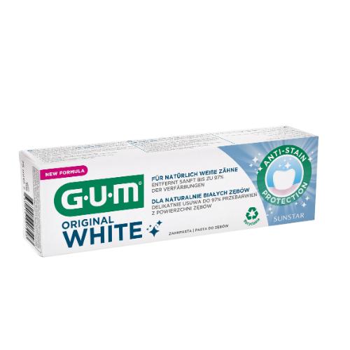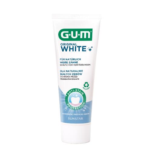 Das natürliche Weiß der Zähne kann durch Verfärbungen, verursacht durch bestimmte Speisen und Getränke, Rauchen, Medikamente oder auch einfach durch den Prozess der Alterung verloren gehen. Unsere Experten haben das GUM Original White Sortiment nicht nur entwickelt, um Verfärbungen zu entfernen, sondern auch, um Ihre Zähne vor neuen Verfärbungen zu schützen. Ideal für den täglichen Gebrauch reinigt die GUM Original White Zahnpasta sanft, schützt Ihre Zähne und stärkt Ihr Zahnfleisch.