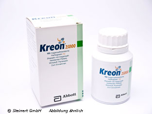 Die Dosierung richtet sich in jedem Fall nach dem Schweregrad der Verdauungsschwäche der Bauchspeicheldrüse. Als allgemeine Richtdosis wird ein Lipaseanteil pro Mahlzeit von 20000-40000 Ph. Eur.-Einheiten (entsprechend 1 Kapsel Kreon 25000) empfohlen. Die erforderliche Dosis kann auch erheblich darüber liegen.