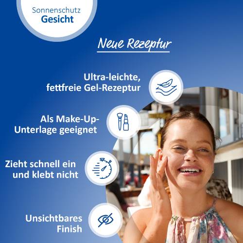 Tragen Sie das Sonnenschutz-Gel großzügig auf das Gesicht, den Hals, das Dekolleté und die Hände auf. Vor dem Auftrag von Make-Up oder anderen Gesichtsprodukten gut einziehen lassen. Cremen Sie nach Bedarf nach – vor allem nach dem Baden oder Schwitzen. Zu wenig Sonnenschutzmittel verringert den Lichtschutzfaktor.