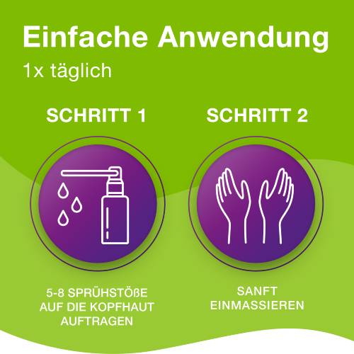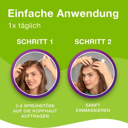 - Einfache und schnelle Anwendung: nur einmal täglich fünf bis acht Sprühstöße auf die Kopf-haut aufsprühen und sanft einmassieren (kein Ausspülen nötig!).
