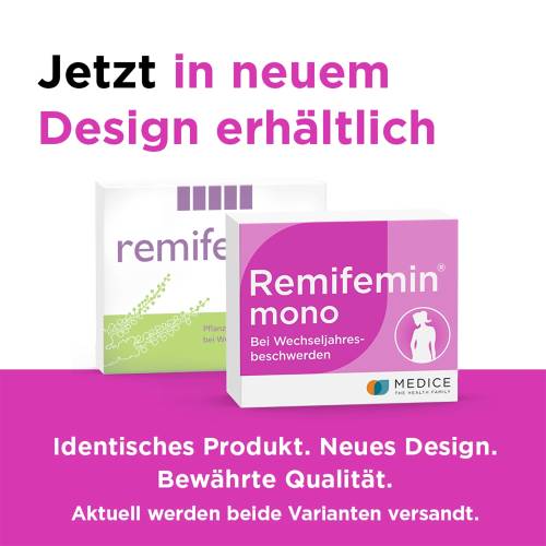 - Remifemin mono : die ideale Empfehlung für Frauen, die ihr Wechseljahrespräparat nur einmal täglich nehmen möchten