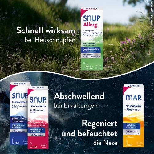 - Wenn Sie Arzneimittel wegen einer Infektion in der Nase erhalten, können Sie SNUP® Allerg zur Behandlung Ihres Heuschnupfens weiter anwenden.