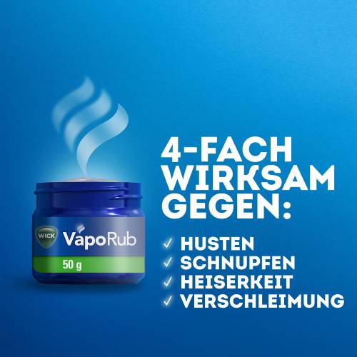 - ERKÄLTUNGSSALBE 4-FACH WIRKSAM BEI ERKÄLTUNGSSYMPTOMEN: WICK VapoRub Erkältungssalbe lindert effektiv, ob Husten, Schnupfen, Heiserkeit oder Verschleimung